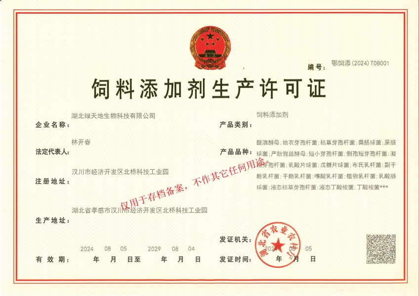 湖北綠天地生物科技有限公司 (簡稱綠天地公司)投資7000萬元,擁有25000平方米的廠房和國內先進的設備360臺套,建有微生物發(fā)酵、發(fā)酵冷凍干燥、低溫造粒等8個車間,發(fā)酵罐總容量450立方米,專業(yè)的飼用級益生菌發(fā)酵生產基地。 公司已通過IS09001:2015質量管理體系認證。 綠天地公司得到了華中農業(yè)大學、中國農...